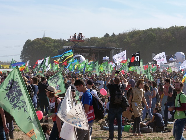 Zur gleichen Zeit gehen am anderen Ende des Tagebaus Hunderte Aktive am Tagebau spazieren, wodurch drei Bagger aus Sicherheitsgründen abgeschaltet werden müssen. Einige bleiben dort über Nacht, so wird einer der Bagger über 24 Stunden stillstehen.